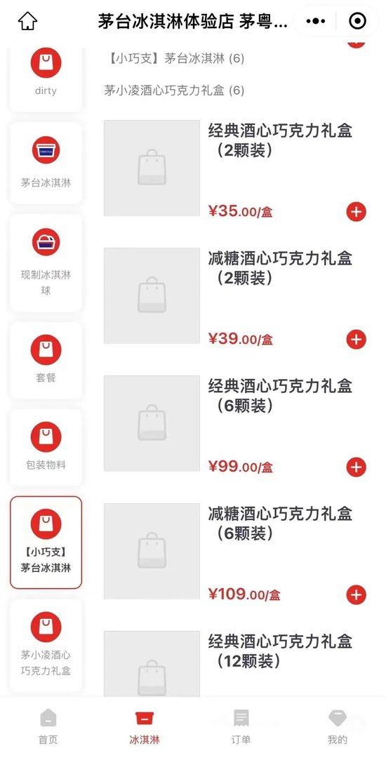 关于价格嘛,之前在茅台冰淇淋体验店小程序里,两颗巧克力要三十五。