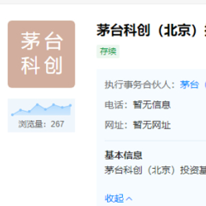 天眼查信息显示,茅台科创基金位于北京市,是一家以从事资本市场服务为主的企业。企业注册资本20000万人民币,公司地址为北京市西城区北三环中路29号院3号楼10层1107,茅台私募为茅台科创基金旗下事务合伙人。