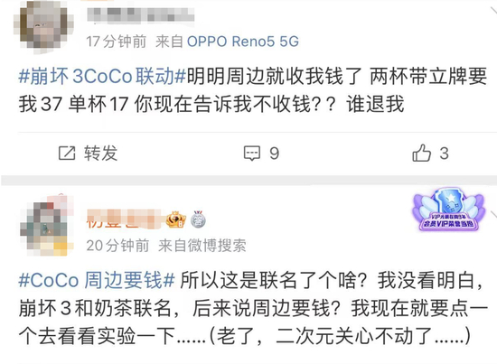 27日早晨,有不少网友在活动开始后发微博吐槽说联名周边收费,#CoCo 周边要钱#一度登上微博热搜高位。
