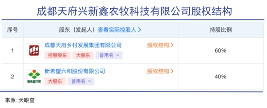 而接盘方成都天府兴新鑫农牧科技也颇为玄妙,其成立于2022年,大股东为成都国资企业,持有60%的股份,而二股东就是新希望六和,持股40%。无论是成立时间,还是股东背景,都不得不让外界起疑,这家公司貌似就是专门接手新希望资产的“接盘侠‘。