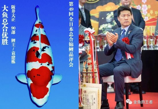 在刚刚结束的2023年全日本锦鲤大赛上,中国苏信锦鲤袁建栋先生的一条松月大正锦鲤(阪井渔场生产),荣获了全场总合冠军。