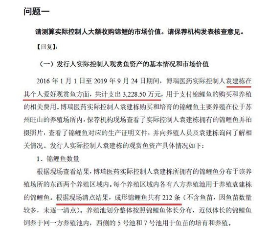 为了这一独特爱好,袁建栋不惜投入重金。这次博瑞医药上市,上交所也发现袁建栋在养锦鲤的个人爱好上支出巨大,特意发函问询。