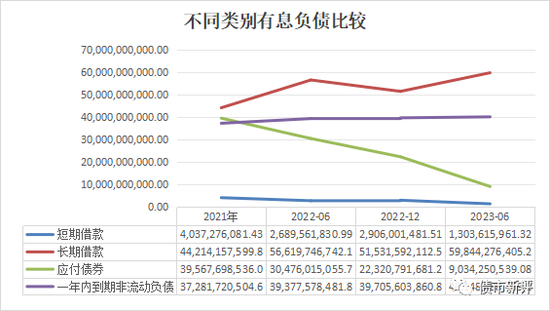 在有息负债中,短期借款从2021年的40.37亿降到了2023年6月底的13.04亿,与此同时,长期借款从442亿增加到598亿。这种短期降,长期增的调整有利于财务的稳健,可以使得企业的资金期限和项目期限更加匹配,减少资金期限错配的风险。
