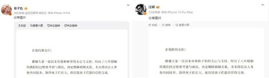 10月23日,两人宣布,婚姻关系解除,未来将以亲人身份抚养、陪伴孩子长大。(点击回顾→)