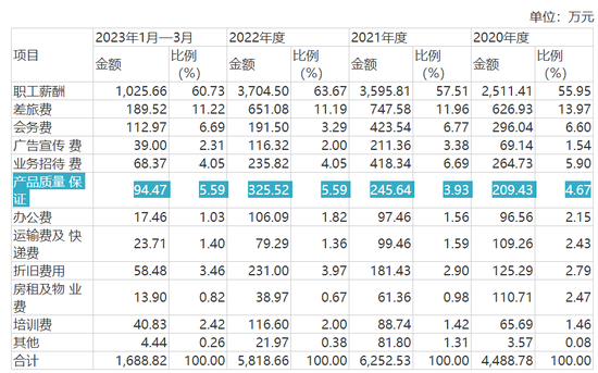四、产品质量存疑,质保费用逐年攀升