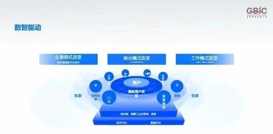 ●第二个就是我们的商业模式。通俗一点就是我们以前是卖一个单个产品,或者是卖个硬件,那么随着数字化的驱动之后,我们掌握的这些数字化的技术、工具和方法后,我们现在卖的是一个集成式的方案,或者是把几个产品整合起来,提供一个局部的、某一个环节的一些解决方案。
