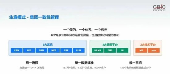 这个“632”是我们把所有的业务、管理以及我们企业运营的核心,建成了一个系统,然后进行了统一流程、统一标准、统一系统,这个是从管控的角度上来看。