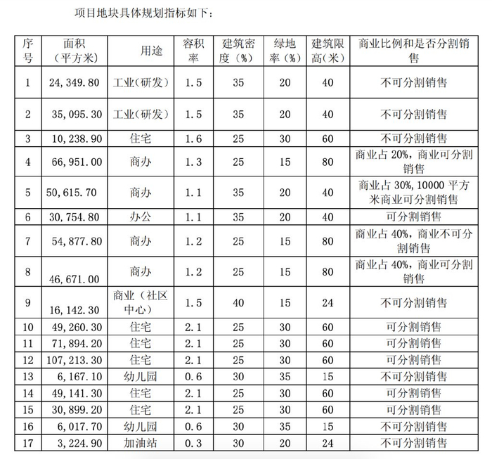 项目地块具体规划指标/图源:陆家嘴《关于下属全资公司联合竞得苏州绿岸房地产开发有限公司95%股权的公告》公告截图
