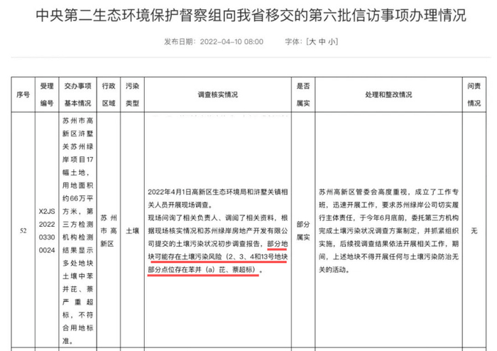 项目因土地污染问题被点名/图源:江苏省人民政府官网