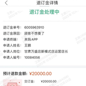 一位来自甘肃兰州的消费者告诉蓝鲸记者,其于2022年10月在国美电器购买了一台洗碗机和一台蒸烤一体机,总价约两万元,不过国美方面一直未发货。疫情结束后,国美虽承诺退款,但一直拖延至今。今年3月份,该消费者购物下单的国美门店已经关闭。