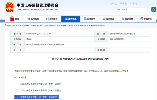 然而遗憾的是,在原定的上会时间(2021年4月22日)前夕,因尚有相关事项需要进一步核查,中国证监会第十八届发审委取消了对老铺黄金的审核。三个月后,老铺黄金再度迎来上会,但却以失败告终。