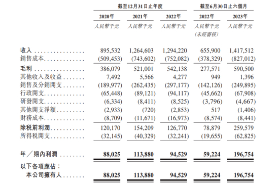 另外值得注意的是,2020年-2022年及2023年上半年各期末,老铺黄金经营活动所得现金流量净额分别为2812万元、1.02亿元、1.48亿元及1.14亿元。在2022年净利下滑的情况下,老铺黄金的经营现金流却不降反增。