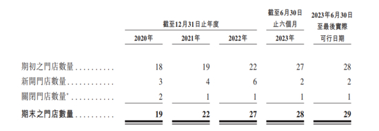 截至递表前,老铺黄金共有29家门店,覆盖全国12个城市,其中大部分位于一线和新一线城市。2020年-2022年及2023年上半年,老铺黄金新开门店数量分别为3家、4家、6家、2家,关闭门店数量分别为2家、1家、1家、1家。
