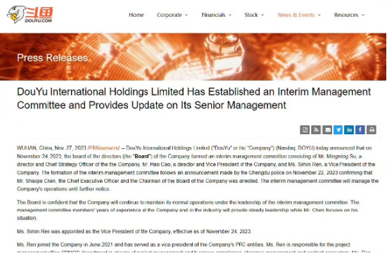 此次成立临时管理委员会,斗鱼在公告中指出,董事会相信,在临时管理委员会的领导下,公司将继续维持正常运作。