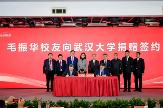 毛振华始终将企业社会责任作为公司发展与自我认同的重要组成部分,高度重视社会公益与慈善事业,心系母校教育事业发展和科研设施建设,积极通过公益捐赠等方式支持武汉大学教育事业发展,近年来,毛振华累计向武汉大学捐赠款项超亿元,获武汉大学终身校董荣誉。值此武汉大学130周年校庆之际,毛振华再次向母校捐赠1亿元,支持母校数字经济、大数据、绿色可持续等相关学科的发展,用实际行动回报母校、服务社会。
