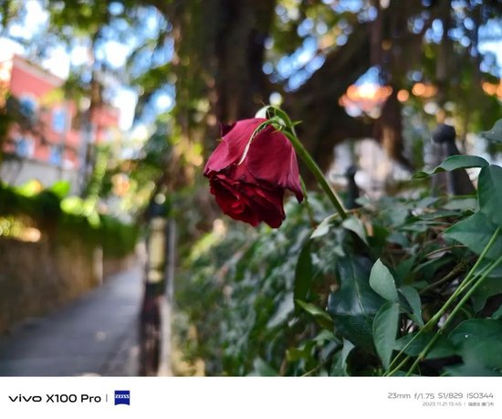 不过,偶尔手机的 HDR 算法会有点用力过猛,让画面失去一些对比。画面好看,但少了点自然的味道。比如这朵玫瑰花,这是默认模式拍摄的: