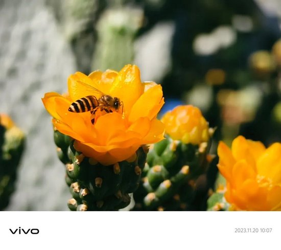 这只小蜜蜂也是,8.6× 也有助于将比较远的小物体拍得比较大。而这是过去大多数 3-5× 以上摄像头所难以做到的。