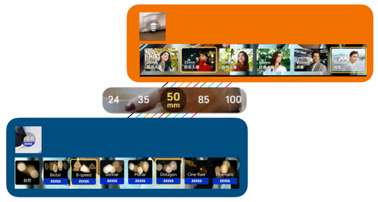 不同的视角只是第一步,在人像模式里,如果你是完全的新手,拿不准哪种效果好,可以点击人像模式界面右下的镜头符号,选择专为某一焦段定制的大师建议风格色彩: