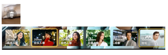 全焦段人像的第一个体现,是在人像界面下,你可以调用 5 个经典焦段,分别是 24mm、35mm、50mm、85mm 和 100mm。