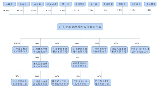 不仅如此,白云美妍持有芭薇股份2.17%的股份,而冷沁园、冷智刚、冷群英哥哥冷智勇、冷智刚配偶的弟弟卢晓、刘瑞学弟弟刘飞均持有白云美妍的股份。