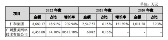 2020年-2022年,芭薇股份对仁和集团分别实现销售收入1,011.28万元、2,547.57万元及8,660.17 万元;对广州蜚美分别实现销售收入0万元、60.82万元、6,455.08万元,对两家客户的销售金额可谓爆发式增长。