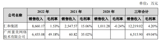 值得注意的是,芭薇股份与仁和集团及广州蜚美之间的销售毛利率水平,可谓云泥之别。据披露,2020年-2022年,芭薇股份对仁和集团的销售毛利率仅有-0.24%、15.06%、1.53%;2021年-2022年,对广州蜚美的销售毛利率却高达35.02%、49.18%。