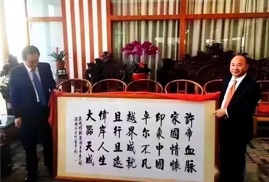 许家印喜欢书法,王文银送来了藏头诗“许家印卓越且伟大”。
