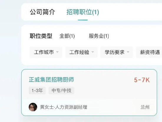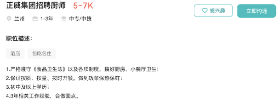 在兰州皋兰县的正威电子信息产业园,如今在boss直聘上只剩下了一个招聘职位,就是有3年工作经验会做馒头的厨师。