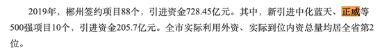 譬如说,在湖南郴州,在引进正威这种五百强企业后,就可以如下报告: