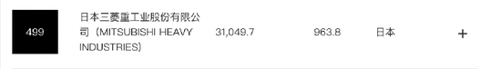 值得注意的是,日本三菱重工排在第499名,略低于成都兴城集团。