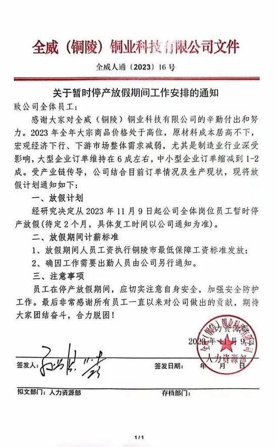这一天早上8点,一位普通的全威铜业科技有限公司员工小陈失眠了一夜,疲惫的他在打卡上班时,注意到了墙面上的一则醒目的红色通知。