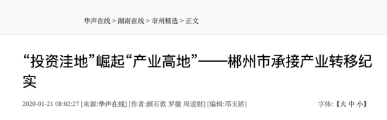 “郴州‘投资洼地’崛起‘产业高地’”