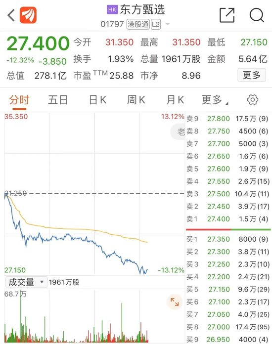 不过,最受伤的可能是他们的老板俞敏洪。今天东方甄选股价一度大跌超13%。短短几天,东方甄选抖音号亦掉粉近10万。