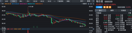一个月后的9月,海目星趁热披露了定增预案,然而迎来的却是股价一路震荡下行。截至2023年12月19日收盘,报收33.6元/股,总市值68.53亿元。