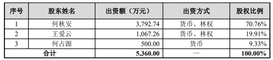 其中,何秋安、王爱云、何占源三人合计控制公司股东大会表决权的比例为59.61%,为公司的实际控制人。