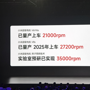 他透露,小米超级电机V6和V6s已经量产,将在首款车型搭载。实现21000rpm,一度超过特斯拉和保时捷,但被友商提前截胡了。