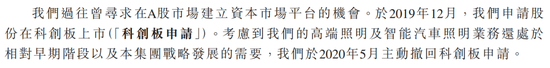 再次有消息便是2020年5月主动撤回,原因为“考虑到高端照明及智能汽车照明业务还处于相对早期阶段以及本集团战略发展的需要”。