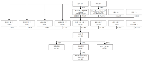 目前,肖国伟、陈正豪、袁立明、APTESS、Giant Power,连同劳美良、微晶先进光电、晶裕投资、晶领投资、晶瑞投资、晶实投资做为一致行动人,合计直接及间接持有晶科电子47.11%股份。陈正豪与劳美良为夫妻关系。