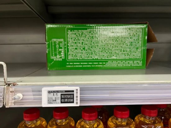 网友对宗庆后的缅怀,也直接转变成了对娃哈哈产品的抢购。很多超市货架上的娃哈哈AD钙奶、营养快线等,都被抢购一空,不少货架上只放着一瓶产品作为展示,标签写着“暂时缺货”。