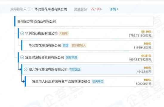 从股权架构来看,金沙酒业目前的大股东为华润酒业有限公司(简称华润酒业),实控人则是华润雪花啤酒有限公司。