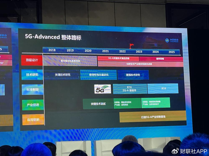 (移动5G-A整体路标 财联社记者摄于2023MWC上海期间)