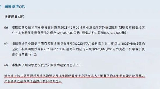 值得注意的是,希望教育在净流动负债持续经营中阐明,因1至5年内可提取银行融资额尚有11.88亿元,境外债及境内资产支持票据获批授信额度合计有18.67亿元,加上预期向学生收取的与教育服务相关的现金流,董事会认为有能力于未来履行财务责任 。