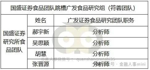 国盛证券食品首席分析师符蓉带领团队加盟广发证券,符蓉任广发证券食品首席分析师。