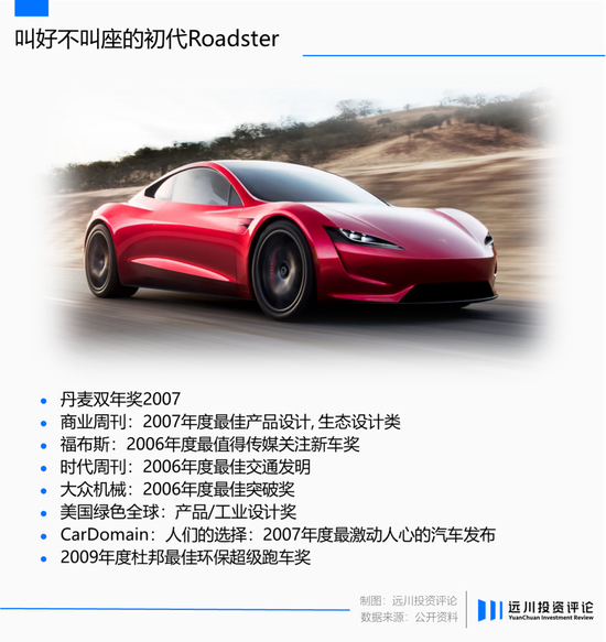 市场最初并不认可特斯拉。单薄的产品线、扑朔迷离的纯电车降本路线,让2010年上市之初的特斯拉一度徘徊在破产边缘。获奖无数、世界首款使用锂离子电池的特斯拉Roadster起售价高达98,950美元,最终全球一共只卖出2000多辆。