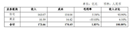 2023年,电建地产的整体毛利率仅有1.85%,比2022年的11.31%由下降了不少。当中,住宅板块的毛利率5.54%,商业板块则是-55.03%。