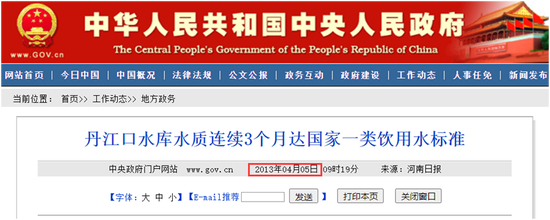 丹江口生态环境部门也在其官网支援农夫山泉,称丹江口库区109项水质监测指标中有107项达到Ⅰ类标准。