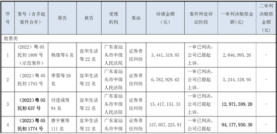 公司对上述案件的一审判决表示不满,并已依法向法院提起上诉。根据一审判决,公司需支付的赔偿金额总计约为人民币1.14亿元。