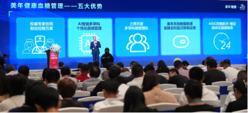 有鉴于此,美年健康集团整合优质资源,推出AI智能“血糖管理创新产品“,该产品采用创新的“三师共管”(医师、营养师、运动教练)模式,为用户提供全面而个性化的血糖管理服务,其服务模式依托于2.3亿条数据支持的血糖管理系统,确保了服务的科学性和准确性。特别值得一提的是,该产品的AI智能控糖助理“糖豆”,不仅运用先进的系统软件智能和AI技术提供动态血糖监测,而且结合功能营养素的科学调配,从用药指导、饮食调整、运动建议等方面为每位用户定制“一人一策”的个性化血糖管理方案,具备五大优势: 第一、权威专家协同制定控糖方案;第二、AI智能多学科个性化血糖管理;第三,“三师共管”(医师、营养师、运动指导师),多学科健管团队;第四、美年系统数据联通血糖实时监测穿戴设备;第五、AIGC控糖助手陪伴式健康服务。这种全天候24小时的陪伴式服务,不仅关注糖尿病患者的血糖控制,更重视糖前干预,即在血糖水平尚未达到糖尿病诊断标准时,就通过早期干预,帮助用户控制血糖,预防糖尿病的发生和发展。
