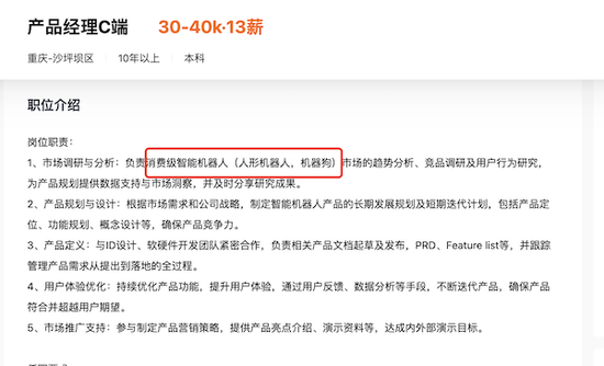 第一财经记者独家获悉,赛力斯已经布局人形机器人,也发布了相关岗位招聘,承接该业务的是赛力斯和重庆市财政局控股公司合资成立的重庆赛力斯凤凰智创科技有限公司(下称“凤凰智创”)。