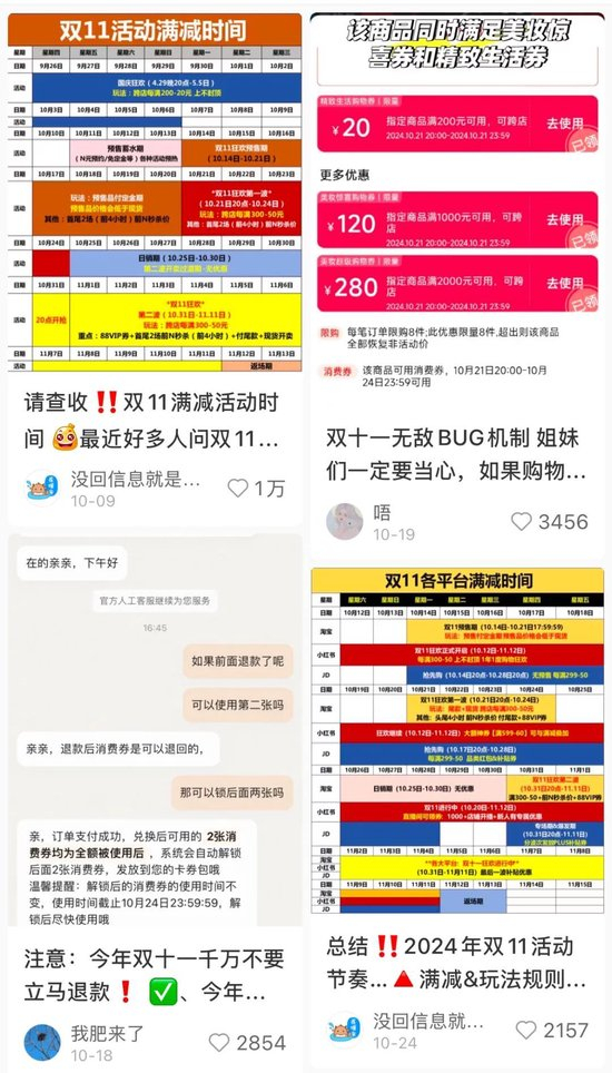 社交媒体平台上关于双11规则解析的内容有很多/ 图源:社媒截图